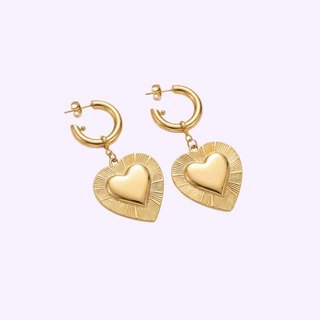 Textured Heart Drop Earrings - 18k Gold Plated Stainless Steel - Raised Heart