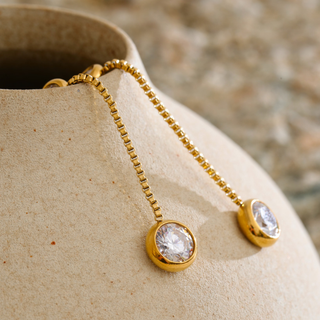 Bezel Trio Huggie Earrings - 18k Gold Plated Stainless Steel - Triple CZ Stones