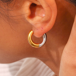 Two-Tone Stainless Steel Hoop Earrings