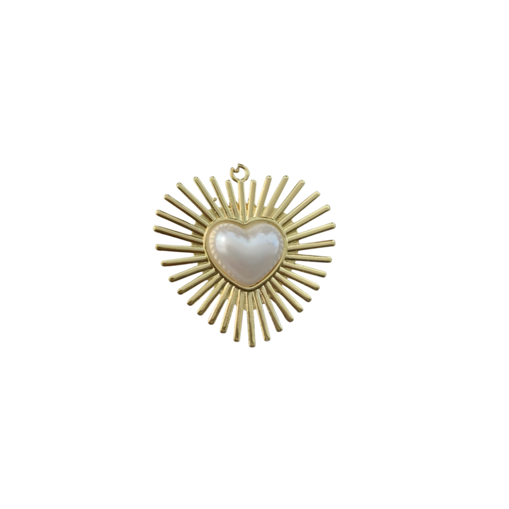 Featuring a faux pearl heart surrounded by dimensional sunburst rays, this charm creates a bold focal point while maintaining a timeless, romantic feel. Its polished finish and versatile size make it ideal for everyday wear, layering, and custom jewelry styling.