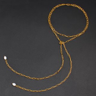 Paperclip Pearl Lariat Wrap | Stainless Steel Chain with Freshwater Pearl Ends