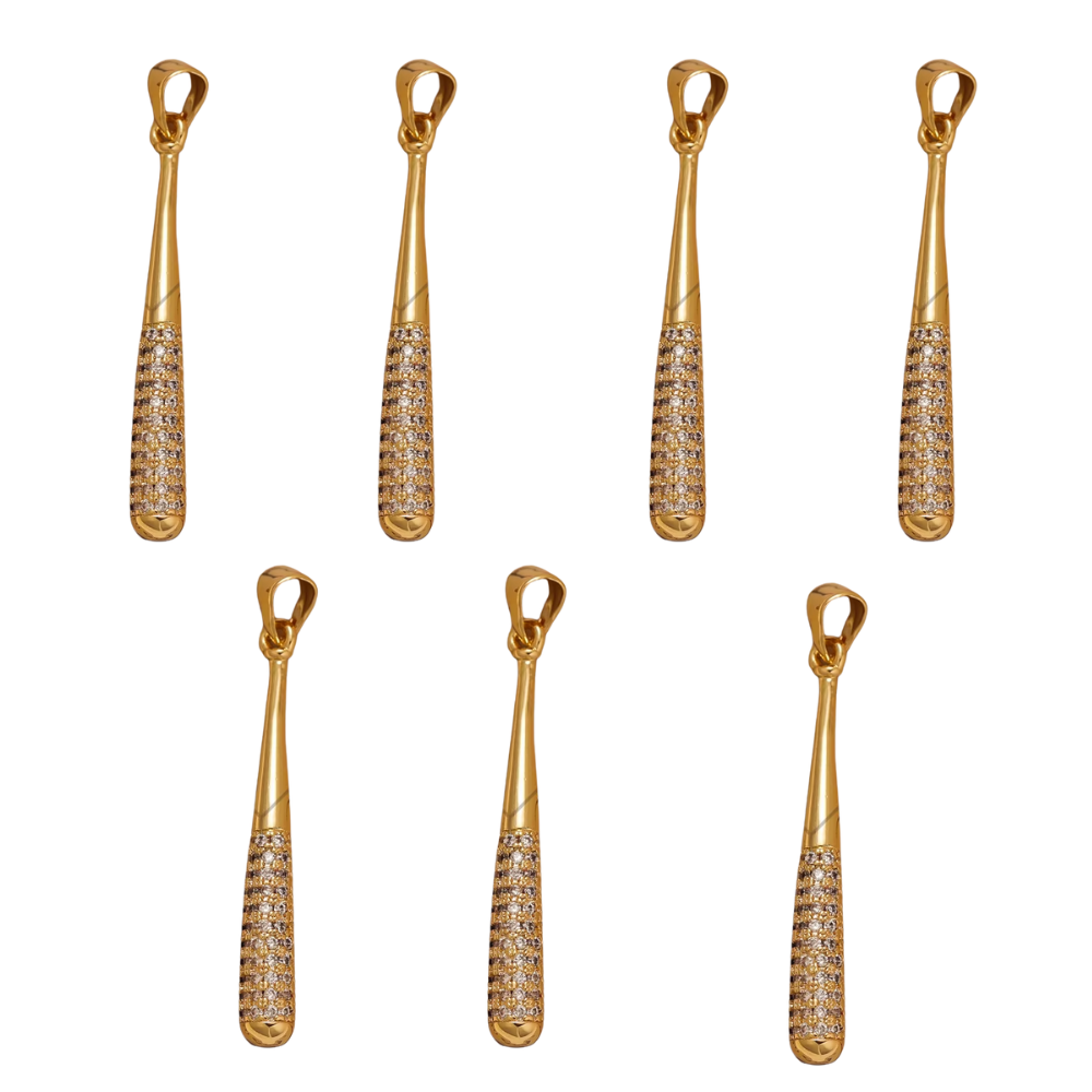 Step up to the plate with our Baseball Bat Charm Pendant, the perfect piece for sports lovers and baseball fans. Crafted in 14k gold-plated brass and accented with sparkling CZ stones along the barrel, this charm captures the thrill of the game in a sleek and stylish design. Whether worn on a necklace, bracelet, or charm bar, it makes a standout statement for athletes and fans alike.