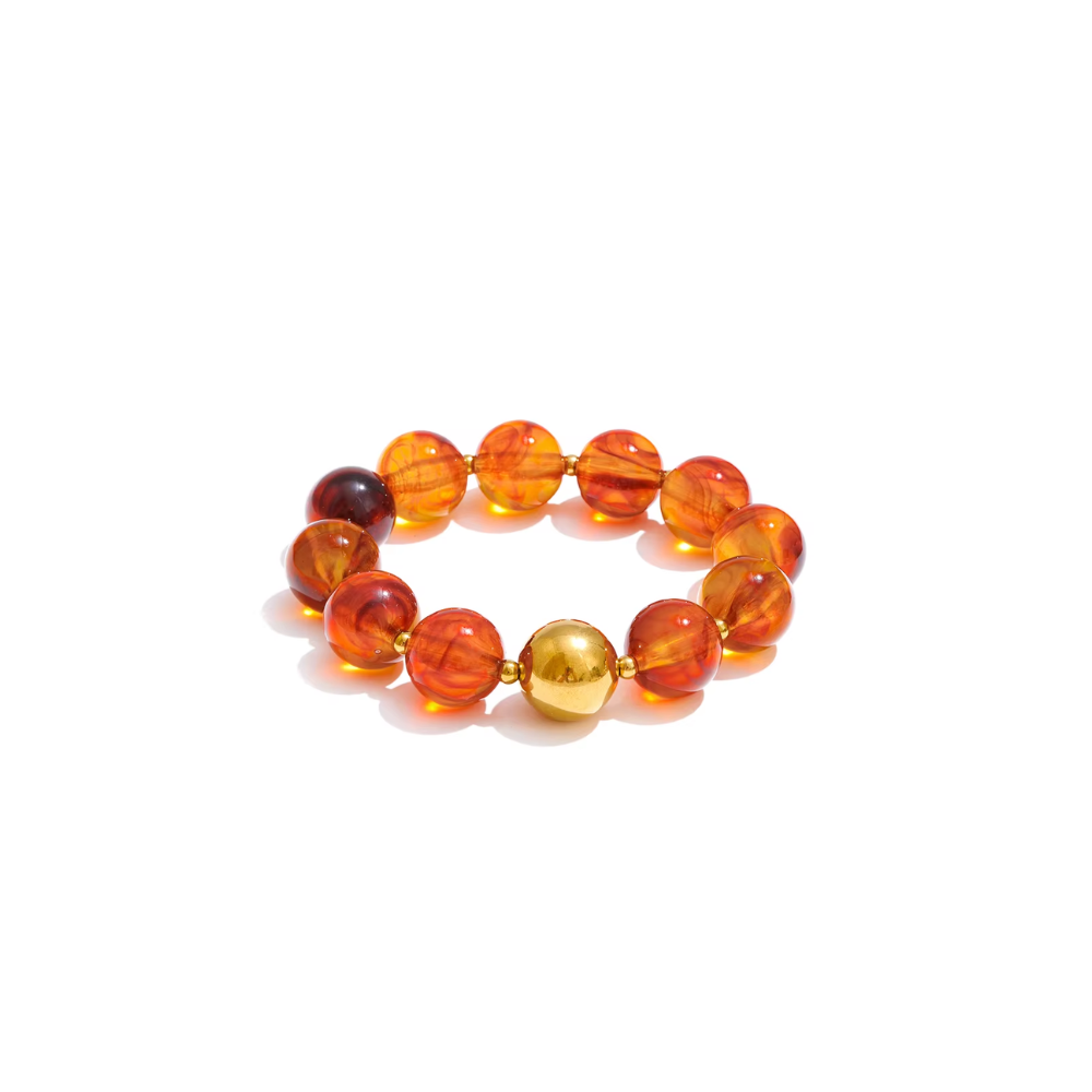 The Mila Beaded Bracelet adds instant warmth and shine to any look. Each bracelet features smooth round beads centered by a radiant gold accent bead, creating a balanced, high-end finish. Available in amber and ivory marble, this stretch bracelet is ideal for stacking or wearing solo.