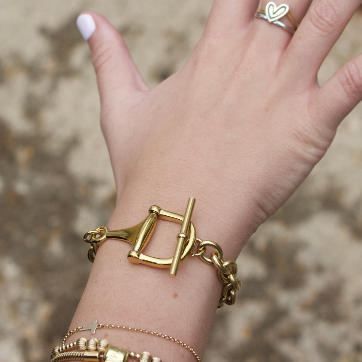 A timeless bracelet inspired by classic equestrian design. The Toggle Bit Bracelet features clean lines and a polished horse-bit–style toggle that adds just the right amount of detail without feeling overdone.
