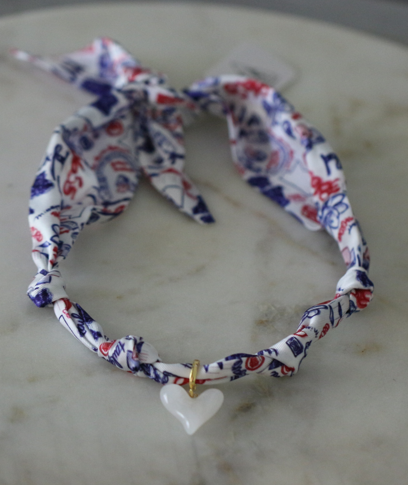Show your team spirit in style with the Oxford Tailgate Scarf Necklace. Featuring a vibrant red, white, and blue print scarf paired with a shimmering heart charm, this piece is the perfect accessory for cheering on game day. Lightweight and versatile, it can be styled as a necklace, hair accessory, or tied to a bag for a pop of team pride. A must-have for tailgates, stadium stands, or celebrating your Oxford roots in everyday wear.